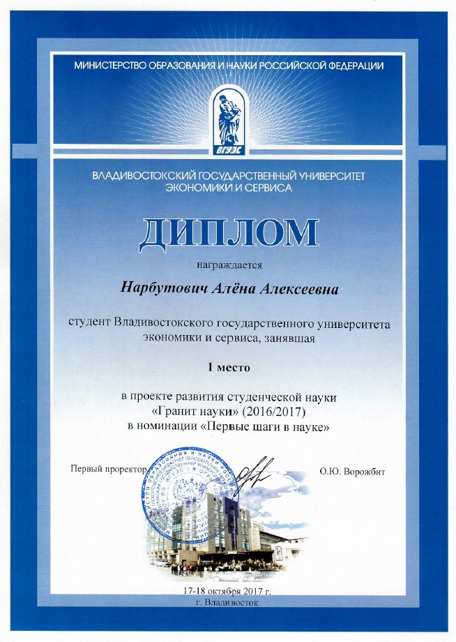 Нарбутович Алена стала победителем в номинации «Первые шаги в науке» (1 место), выпускник магистратуры 2017 г. Шорников Кирилл стал победителем в номинации «В поиске научной истины» (3 место).